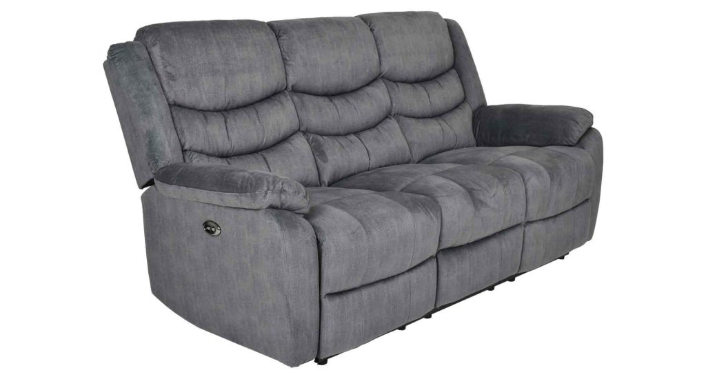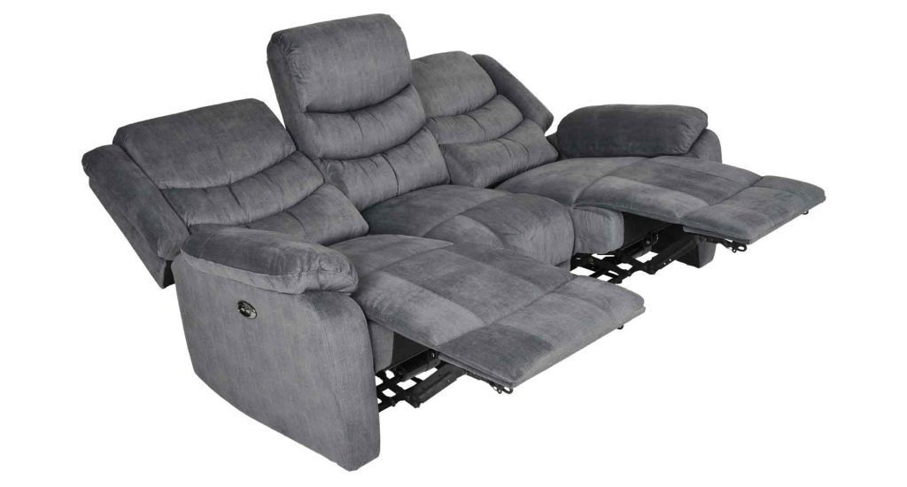 HARLEM 3-sits biosoffa med 2st. elektrisk recliner sitsar, i grått sammetsliknande tyg Ridge.